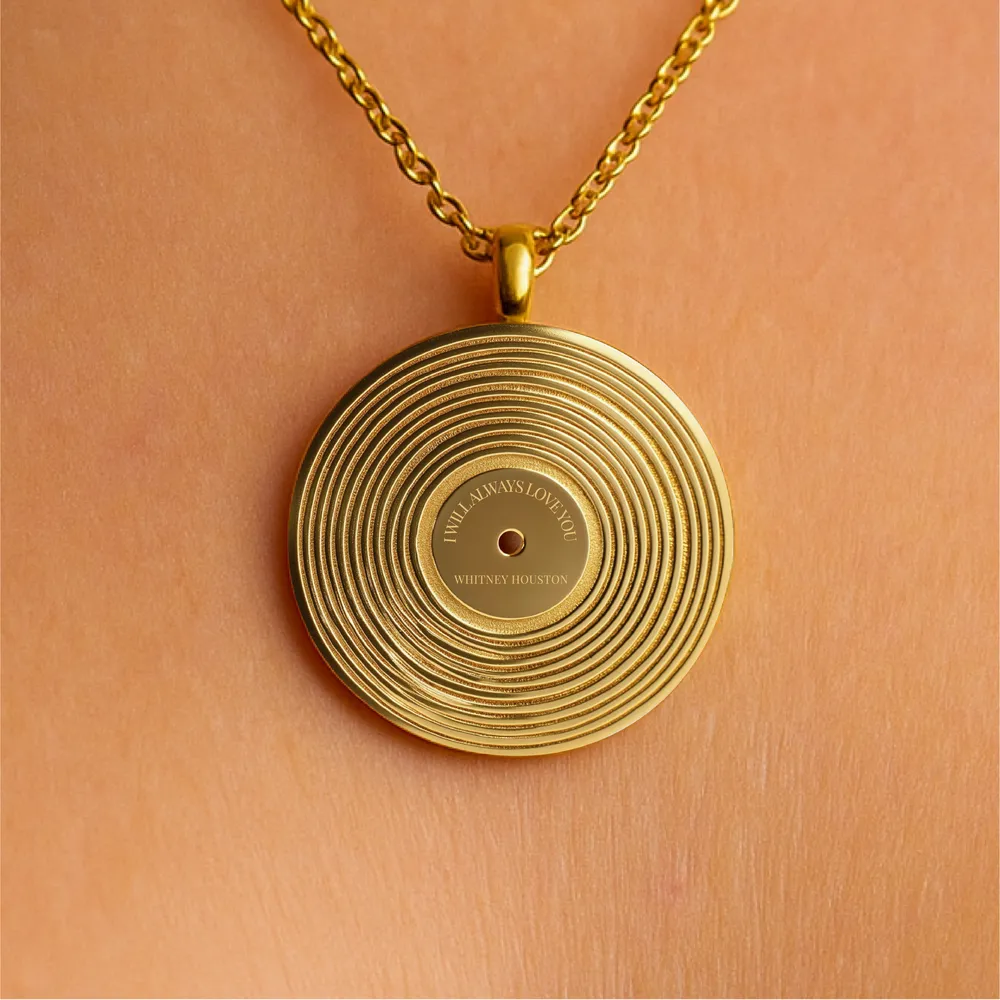 Celebrate Whitney Houston’s iconic “I Will Always Love You” with this personalized lyric pendant. Engraved in a record‑style spiral, it brings music to life and makes a meaningful keepsake for Anniversaries, Weddings, Valentines Day and the perfect custom Christmas gift.